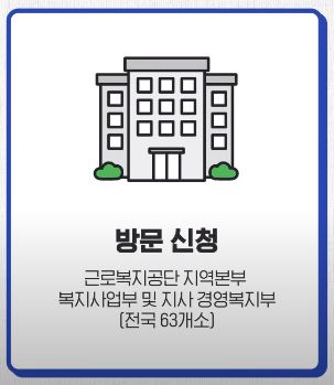 ✅ 방문 신청 : 근로 복지공단 지역 본부 복지사업부 및 지사 경영복지부 (전국 63개소)