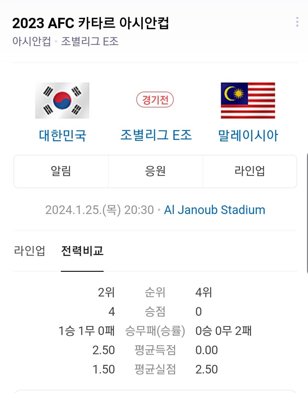 023 AFC 아시안컵 대한민국 VS 말레이시아 축구 보러 가기