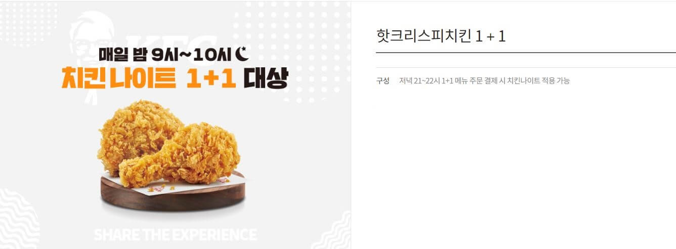 KFC에서는 매일 정해진 시간에 치킨나이트 1+1 행사를 진행하고 있습니다. 오늘은 치킨나이트 이벤트, 시간, 메뉴, 가격을 알아보겠습니다.
